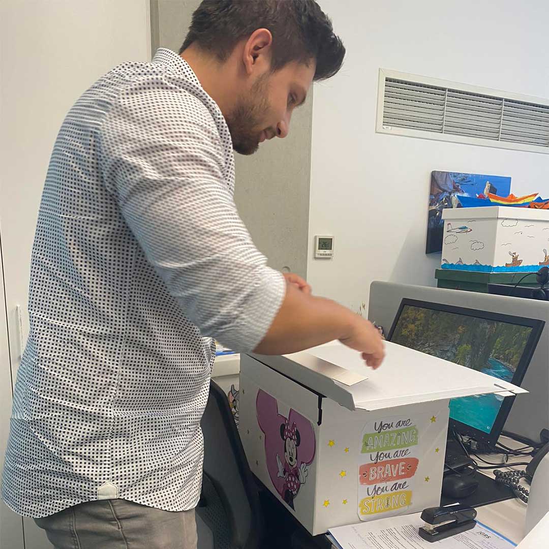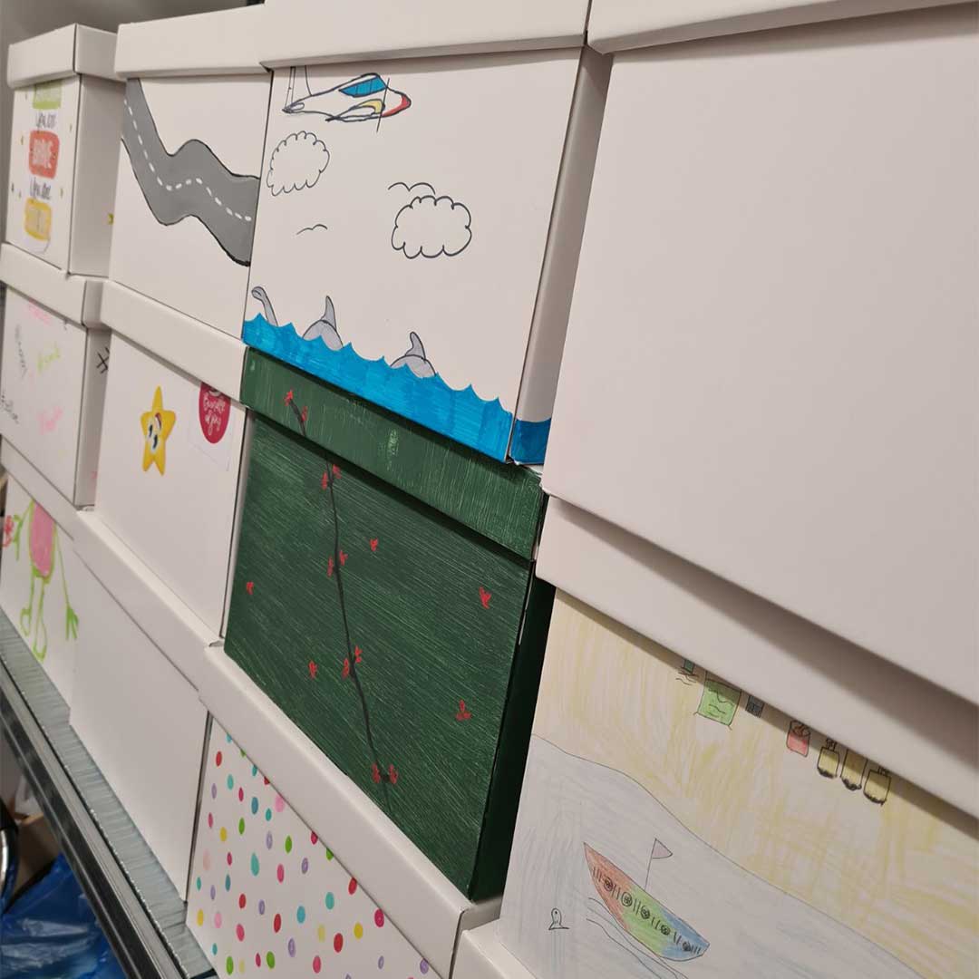 Our employees decorated with love & imagination plain white boxes (bundles) that were bought from the HR department, while the HR department filled them with the necessary food supplies & distributed them to the families in need.